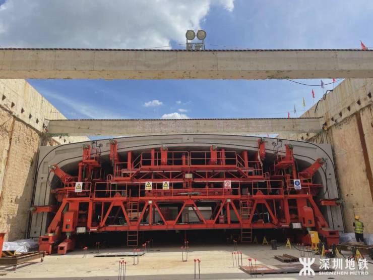 坪西站为自主研发的国内首个内支撑体系下半刚性连接全预制装配式车站,项目列入广东省住建厅2021年科学技术计划。车站主体结构装配率达到73%,装配段采用智能化施工装备拼装,具有安全性高、拼装高效、干式便捷连接、机械化程度高等特点。