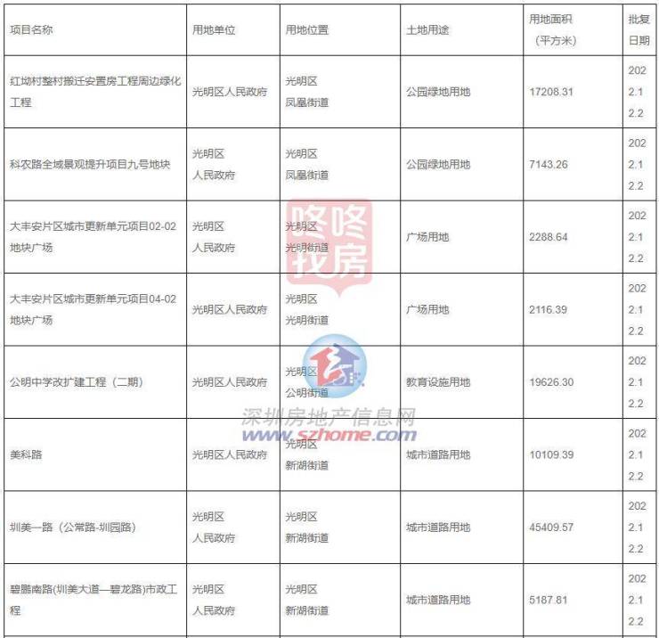 1月9日,光明发布了一批项目用地批复的通告。