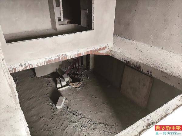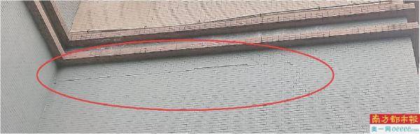 另据阳光达花园业主透露,其也是在4月上旬在二楼的几个小窗户打开了之后才发现内部存在改建,此后上到二楼仔细观察才发现其消防和下水管等设施疑似都被改造了。他表示,此前该区域曾被用作办公,短时间以来整栋楼出现了一些下沉,同时不少业主的家中也出现了立面墙开裂的情况。随后,该业主带领南都记者一行来到A栋三楼一处平台上,现场确可见位于改建区域正上方的某处立面墙上存在裂痕。