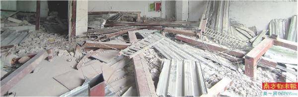 4月23日,在陂头肚综合楼二楼东南端,即阳光达花园A栋正下方的二层空间内,南都记者现场清点发现该区域内共有19套改建出来的两层复式毛坯住宅,套内单层面积在40至60平方米之间,套内格局以三房和两房的复式结构为主。其中,复式楼板结构以钢梁和混凝土制成,一层高度在2.5米左右。南都记者走访当天发现,该区域已经无法乘坐电梯到达,原先通往电梯间的消防门已经被封堵,记者一行只能从综合楼一楼东南端的一处铁皮门进入楼梯间步行至二楼。走上二楼后,首先可以看到的是大量堆积的混凝土板、钢架梁和铁皮等建筑废料。据了解,龙岗街道执法队已经开始对该区域内违法加建部分进行拆除作业,现场所见建筑废料即为拆除产生。