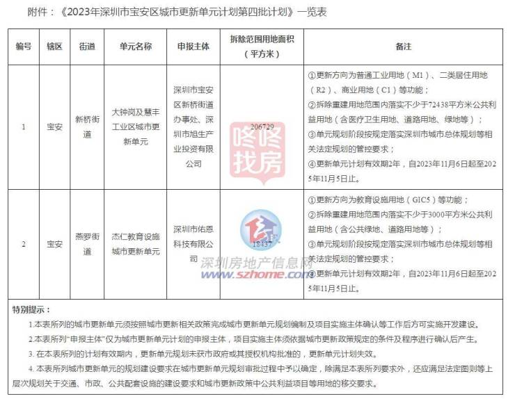 11月6日,《2023年深圳市宝安区城市更新单元计划第四批计划》已经宝安区政府批准,现予以公告。