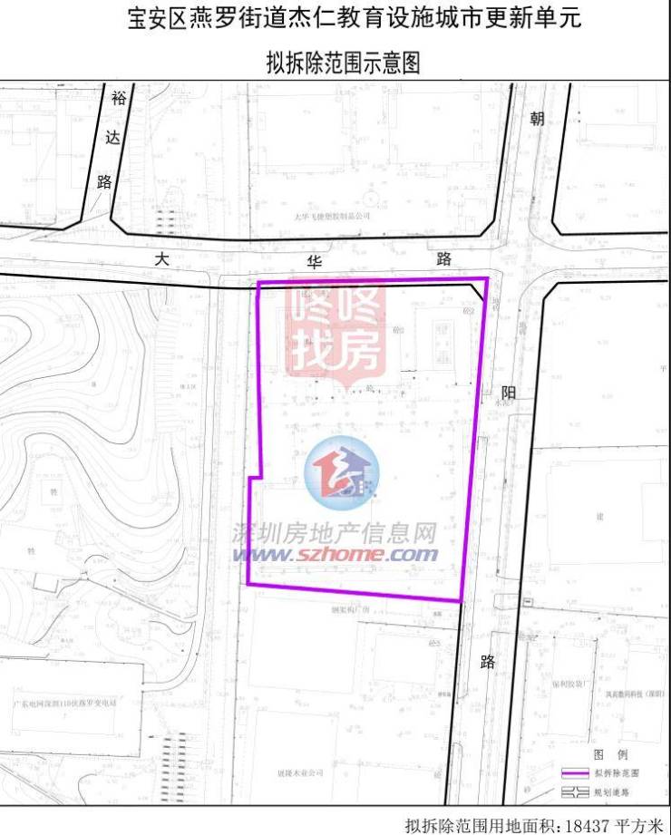 宝安区燕罗街道杰仁教育设施城市更新单元位于燕罗街道朝阳路与大华路交汇处西南侧。