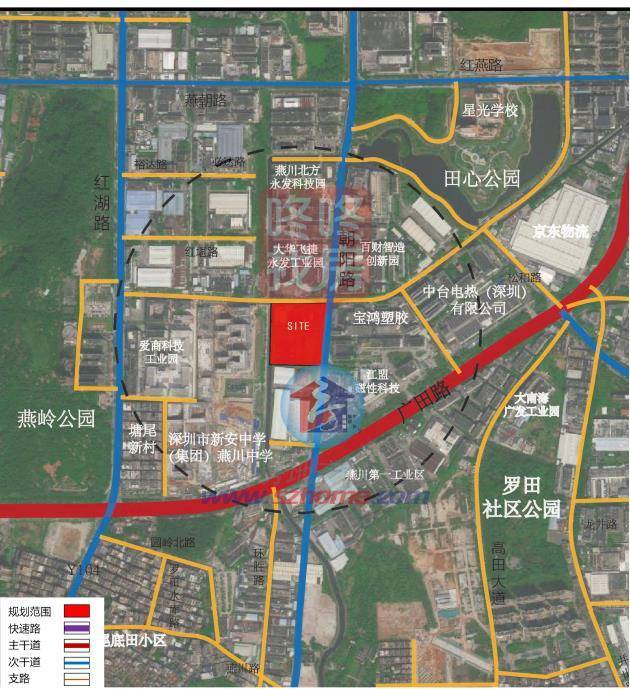 宝安区新桥街道大钟岗及慧丰工业区城市更新单元位于新桥街道,北侧紧邻南环路,西侧为中心路,南侧为凤塘大道。