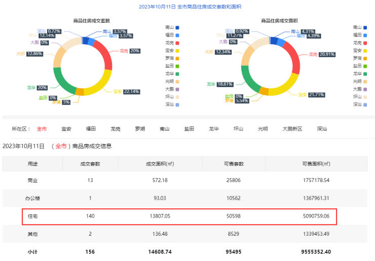 10月11日深圳新房住宅网签140套 二手房住宅网签170套