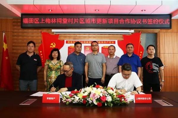 2019年4月23日下午14:00,京基地产与深圳上梅林股份有限公司举行上梅林祠堂村片区城市更新项目合作开发协议签约仪式。京基集团董事长陈华、京基地产公司总裁杨玉雄及上梅林股份公司董事长黄宝明、总经理黄欢全等出席。
