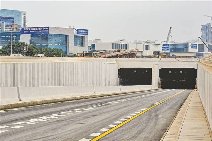 同步正在进行明挖隧道、电力隧道、综合管廊主体结构施工,以及隧道内部道路施工。前海段明挖段隧道结构浇筑累计完成68.02%,电力隧道段结构浇筑累计完成约76.18%。宝安段明挖隧道主体结构已完成,综合管廊主体结构已完成85%。预计2024年建成后,将有效完善前海外部路网结构,链接南山港区的疏港货运交通,降低前海区域地面货运交通压力。