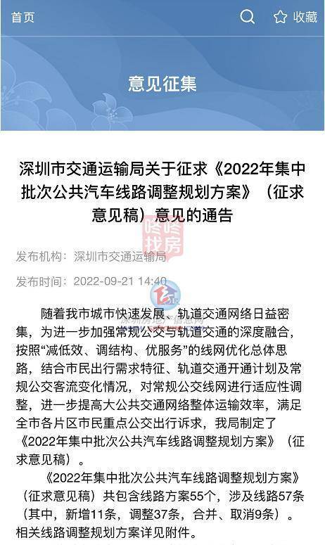 9月21日,深圳市交通运输局发布关于征求《2022年集中批次公共汽车线路调整规划方案》(征求意见稿)意见的通告。(以下简称规划方案)