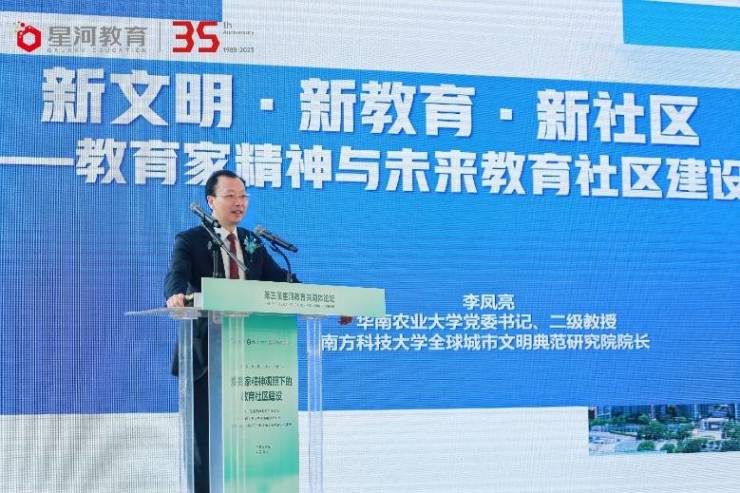 李凤亮书记以《新文明·新教育·新社区——教育家精神与未来教育社区建设》为主题展开演讲。“教育家精神是建设教育强国的宝贵精神财富和重要力量源泉。”李书记表示,教育家精神是中华民族现代文明的重要内容,建设面向未来的教育社区,有助于“人人崇敬教育家、人人学习教育家、人人争当教育家”。这也与星河教育社区让所有人“向着幸福蓬勃生长”的理念不谋而合。