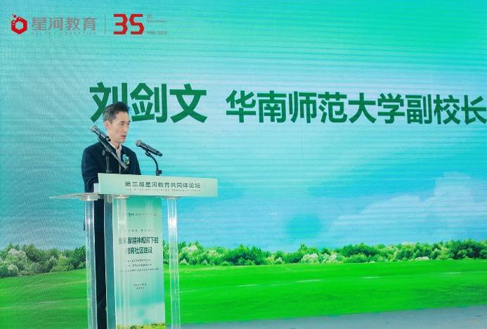 华南师范大学副校长刘剑文在致辞中表示,华南师范大学与星河控股集团十多年来的深度合作,先后携手创办了7所学校和4所幼儿园,初步建构起了面向未来的教育社区,助力区域基础教育的高质量发展。未来将继续拓展与星河的合作领域,积极开展前沿教育项目研究,共同建立相互尊重、互利共赢、和谐共生的新型合作关系和实践共同体,助力社区人民实现美好的教育生活。