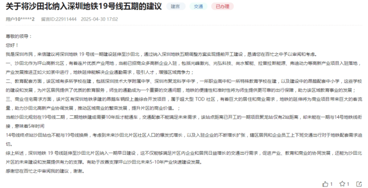 通过网友们的留言可以看出,他们对坪山未来的发展非常上心。