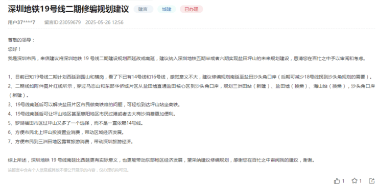 而地铁19号线二期的规划走向,让不少网友在领导留言板上纷纷建言献策!
