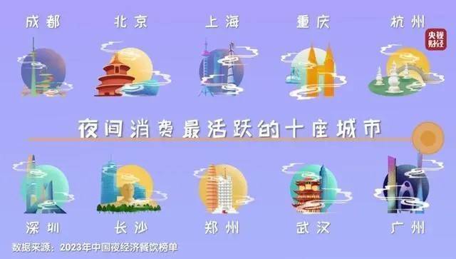 夜经济,被视为衡量城市经济活力的重要指标,已逐渐成为我国各大城市的发展热点。全国夜经济发展整体趋势显示,“华南地区当仁不让”,排在七大区域首位。根据相关数据,2023年夜间消费最活跃的十座城市是:成都、北京、上海、重庆、杭州、深圳、长沙、郑州、武汉、广州。