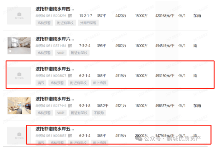 以今天法拍的五套豪宅为例,华侨城纯水岸别墅目前同户型二手市场一套挂牌价2亿,一套挂牌价1.8亿,折合单价在50万/㎡左右,而今天拍出的房源单价才27.4万/㎡,相当于净赚大几千万。