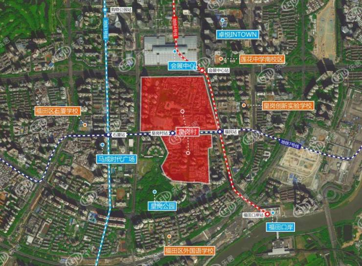 皇岗村位于深圳福田CBD核心腹地,北邻市民中心,南接皇岗口岸,与香港隔河相望。
