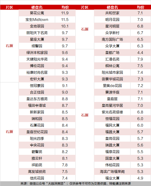 我们整理了皇岗村周边近一公里的房价,我们来看目前周边二手房价如何: