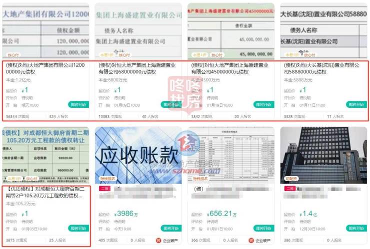 恒大地产集团1.2亿债权1元起拍卖,超300人报名!明日开拍