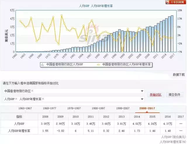 和香港对比,深圳2017年的人均GDP依然赶不上香港,相当于香港2017年人均GDP的64%(香港2017年人均GDP预计4.46万美金)。