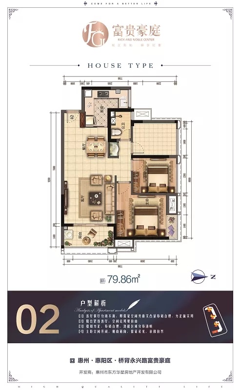 惠州富贵豪庭在售户型78㎡,79㎡,89㎡,2房-4房。在售栋数3栋32层,2梯6户,项目是毛坯销售的。