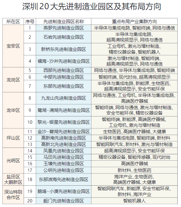 2022年6月,《深圳市20大先进制造业园区空间布局规划》上线。