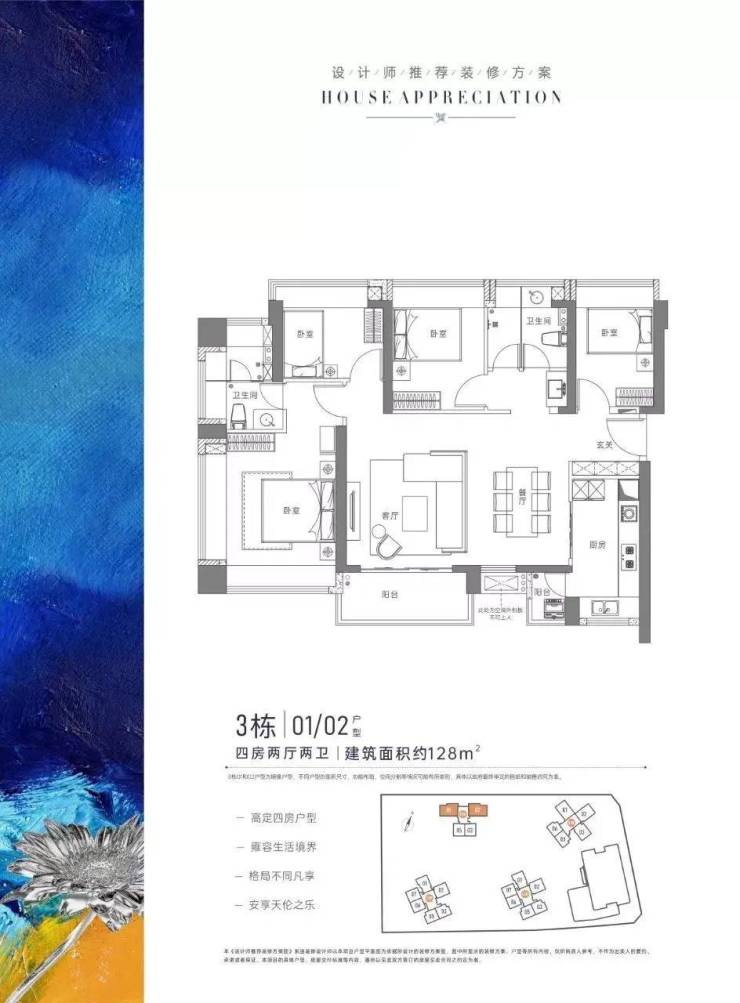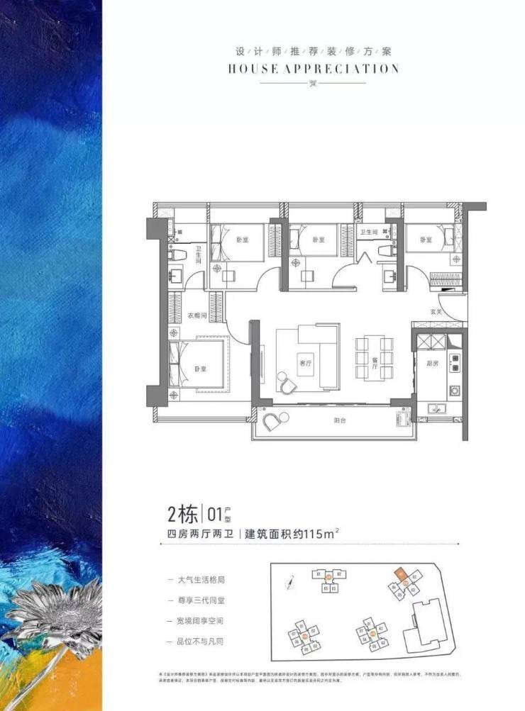 大户型方面,115㎡和128㎡都是南北通透格局,且主卧均带衣帽间,公卫做干湿分离设计。另外,115㎡户型有横厅和竖厅2种格局,大户型整体空间宽阔,布局合理。