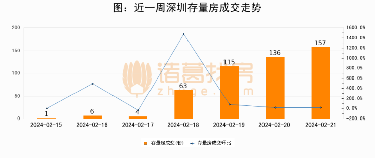 从存量房来看,2024年02月21日深圳存量房单日成交157套,比昨日增加21套,环比上涨15.4%。从近一周存量房成交来看,深圳存量房日均成交套数为68套,02月21日单日成交157套,高于近一周平均水平130.9%。