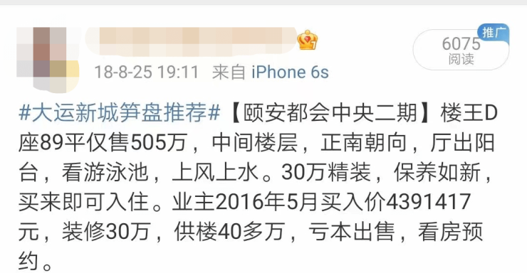 这个爆料消息还挺真实的,现在颐安都会中央一二期放盘数量百来套,数量庞大,带看量其实不少,就是卖不出去。