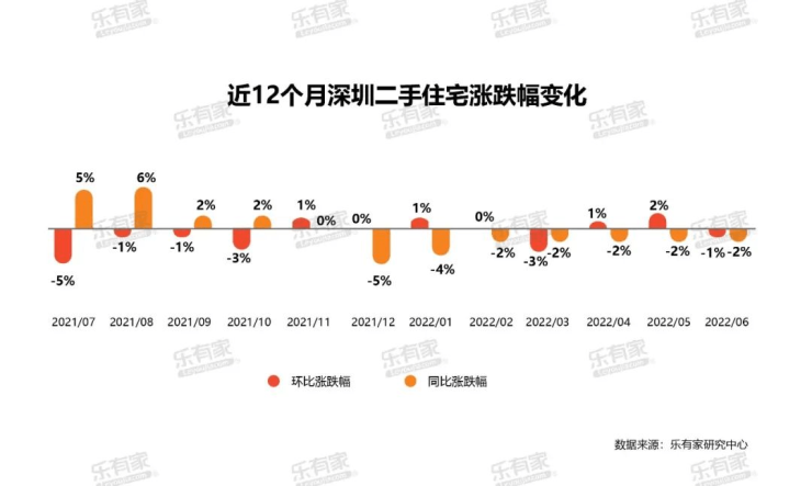 乐有家研究中心数据显示,2022年上半年深圳二手住宅成交量竟不及10000套,环比下跌19%,同比下跌65%。