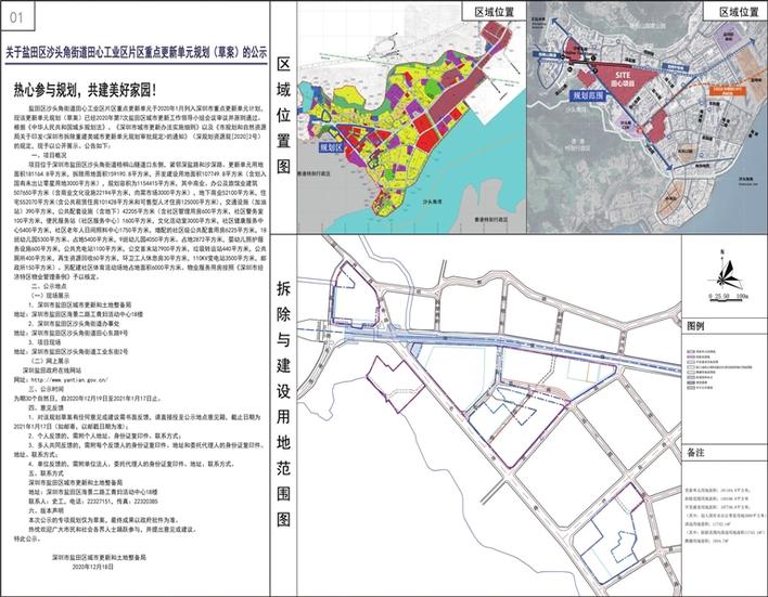 12月19日,深圳特区报刊登了一则《关于盐田区沙头角街道田心工业区片区重点更新单元规划(草案)的公示》。