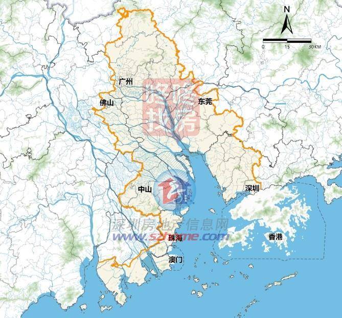 地图上看,“100公里黄金内湾”大概指深圳、东莞、广州、中山、珠海的这段珠江口水域,包含狮子洋与伶仃洋,水域面积约2100平方公里。就是从广州黄埔大桥到港珠澳大桥这段距离,长度大约就是100公里。其实,也就我们惯常理解的“珠江口”、“珠三角”,这个“A字型”入海口(也是一个“倒U型”黄金发展圈)。