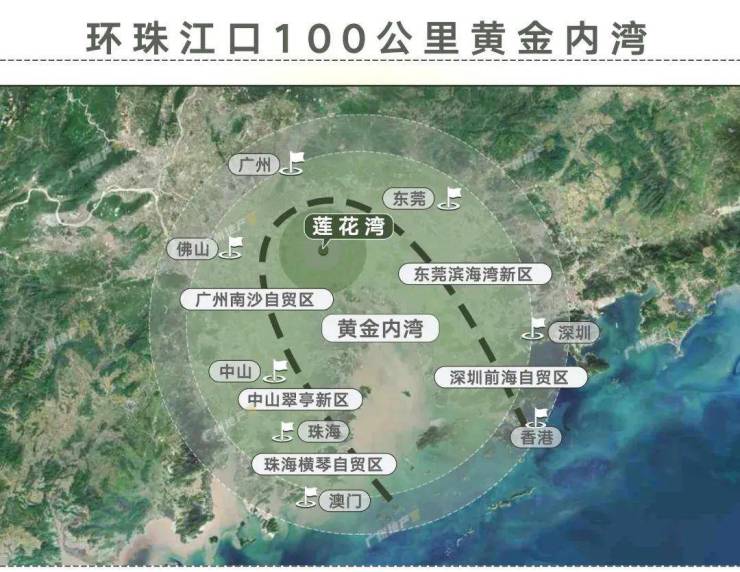 据此前的资料,黄金内湾位于粤港澳大湾区环珠江口100公里。基于珠江口两岸已经形成了相互竞争又关联互补的经济生态圈。在已经具备了比较理想的工商业和科技基础上,进一步挖掘湾区潜力,实现优势互补,以形成集合效应。