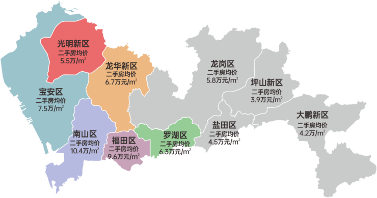 从历史发展上来看,深圳各区的中心区成长期价格洼地,财富增值潜力巨大。关内的如福田中心区2008年新盘均价约1.8万,2016年某楼盘开盘价超10万,上涨超5.5倍;关外的如龙华中心区2012年新盘均价约2万,2021年顶峰楼盘突破10万,上涨约5倍...