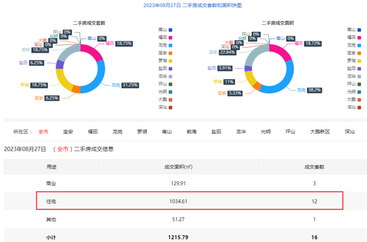 8月27日二手房住宅网签12套。宝安1套;福田3套;龙岗5套;罗湖0套;南山24套;盐田3套;龙华3套;光明0套;坪山0套;大鹏1套。