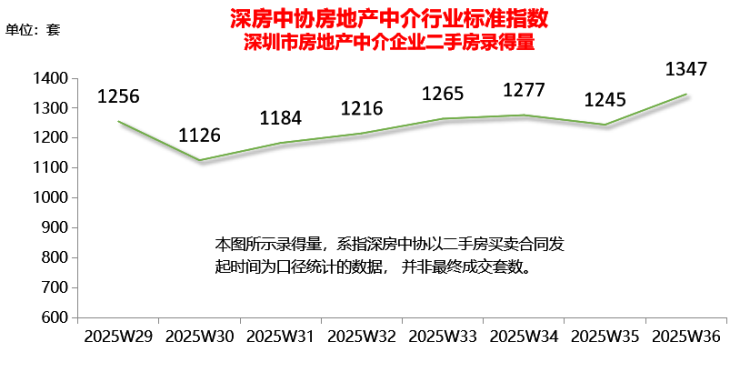 经深房中协统计,2025年第36周全市二手房(含自助)录得1,347套,环比增长8.2%,9月5日深圳楼市新政发布后,首周末2天二手房录得量较上周周末增长37%。