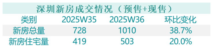 据深圳市房地产信息平台数据,2025年第36周全市新房(预售+现售)成交量大幅增长38.7%。