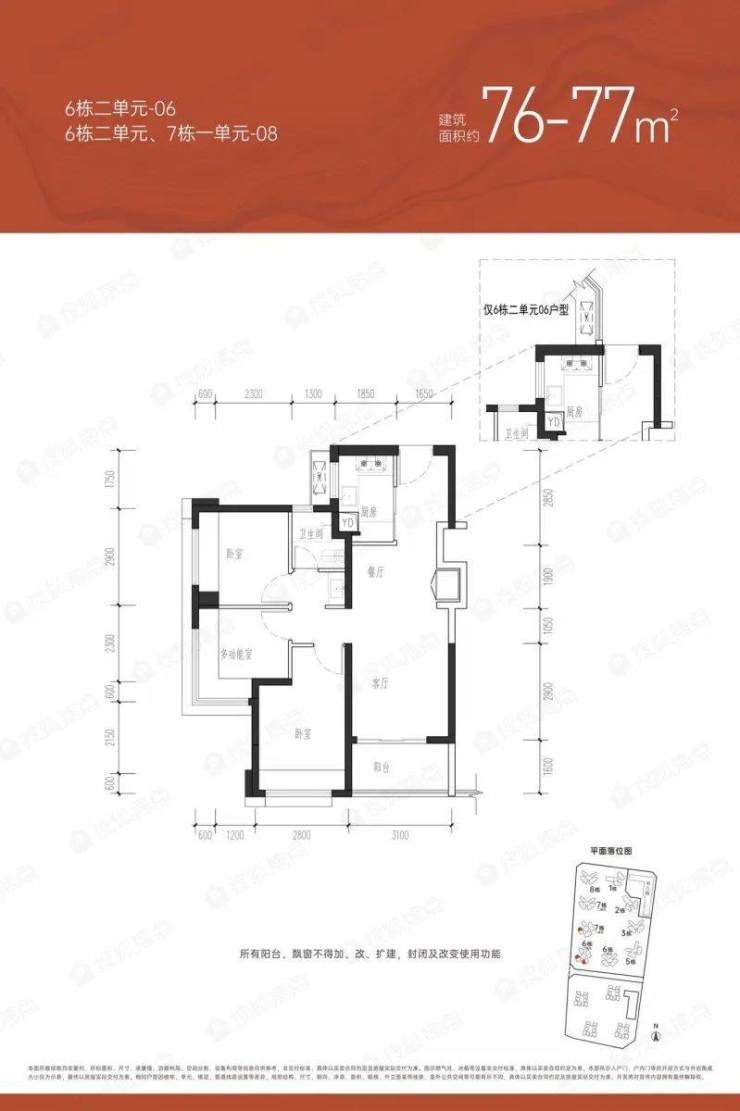 本次推出的房源位于7栋一单元及二单元、8栋,主推户型为建面约76-105㎡3-4房,备案单价约5.05-6.14万/㎡,整体均价约5.5万/㎡,备案总价约383万-647万/套。