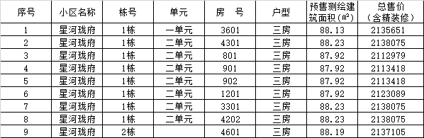 本批次配售的两房总价约153-167万/套,房源多在中高楼层;三房户型总价区间约211-213万/套,具体价格表如下: