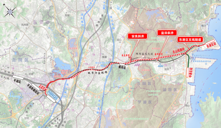 平盐铁路改造工程先开段为全线控制性工程,横岗隧道安良斜井、盐田斜井、东港区支线隧道三个节点,总投资约2.81亿元。