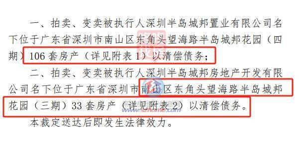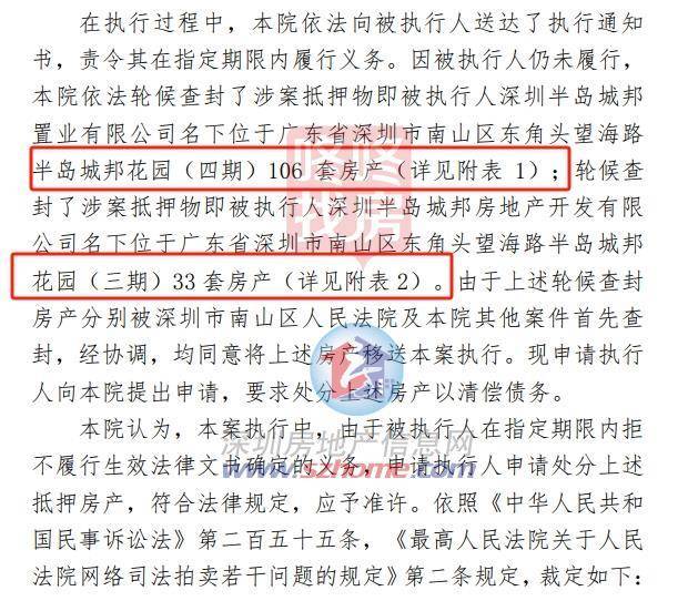 去年4月,半岛城邦开发商与另外一家银行的借贷纠纷,总共半岛城邦花园(四期)106 套房产+半岛城邦花园(三期)33 套房产,均用于清偿债务。