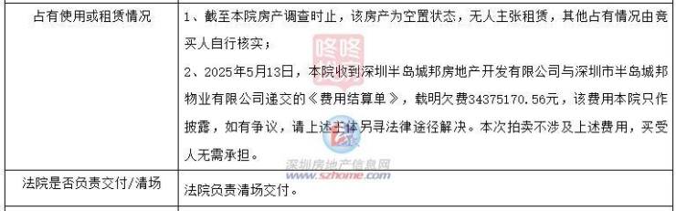 值得注意的是,该会所还有由半岛城邦开发商及物业提交的约3438万元的欠费情况,但是本次拍卖也声明了不涉及该费用,买受人无需承担。