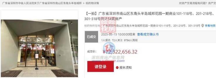 不过还好的是,今年5月,另外54套商业打包法拍,在一拍的时候,以约7232万元成交。