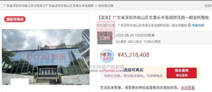 半岛城邦独栋会所3次流拍!变卖起拍4532万,欠费3438万?