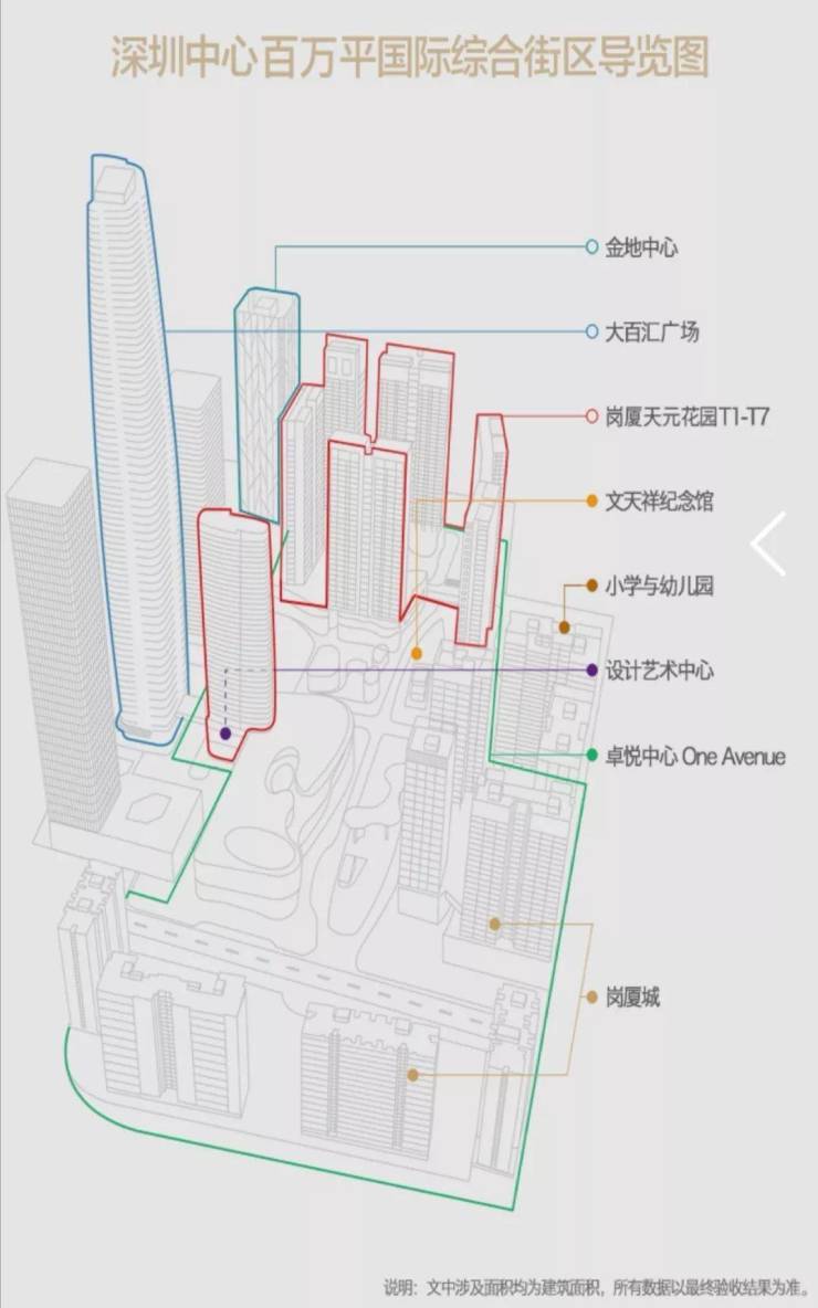 除此之外,项目包括约29万平米商业——卓悦中心one avenue(2019.9.12已经开业),800米中央大街,两座超甲级写字楼——金地中心、大百汇广场,城市豪宅——深圳中心·天元,文天祥小学、幼儿园,文天祥纪念馆等部分。