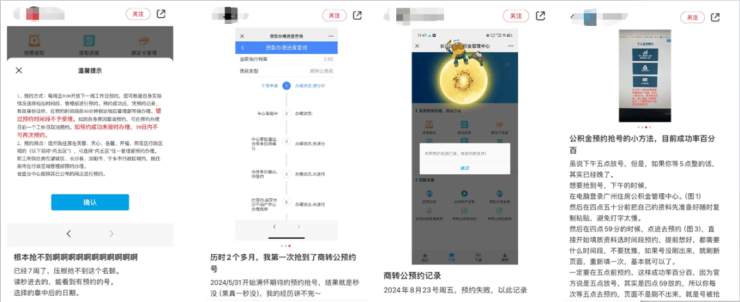 值得注意的是,近期不少网友发帖称,“商转公”贷款业务办理预约号难抢,网点的可预约时间不少显示“已约满”。有网友称“根本抢不到”“果真一秒没”,还有网友称抢了两个多月终于抢到了,更有网友晒出抢号的“小技巧”……