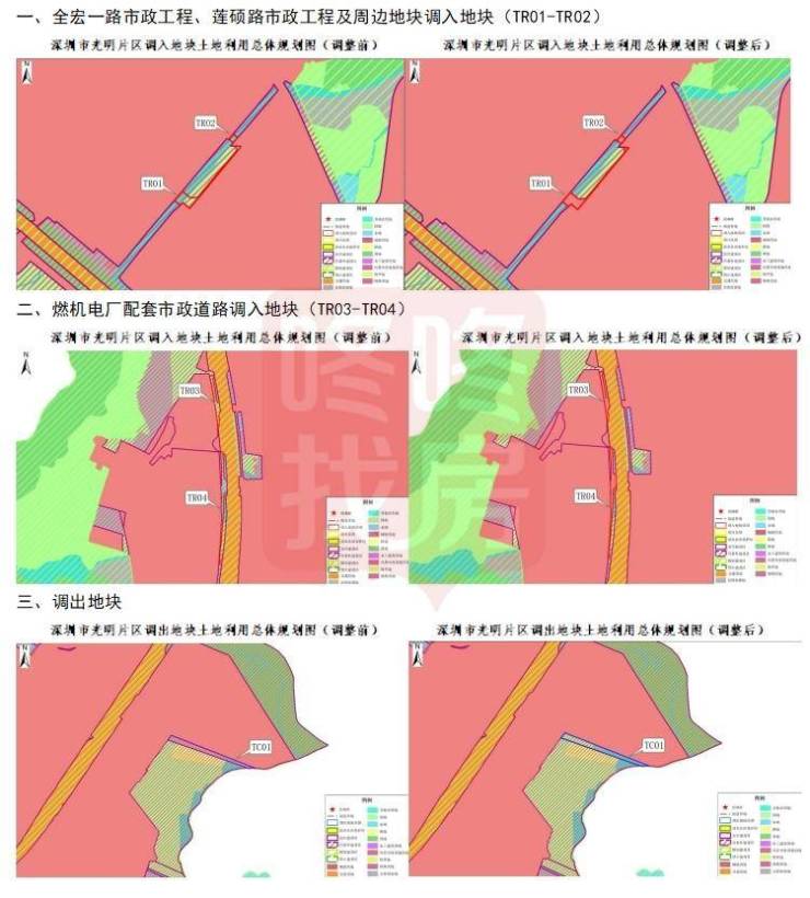 包括[光明中心地区]法定图则05-14地块、全宏一路市政工程、莲硕路市政工程等项目土地利用总体规划调整;