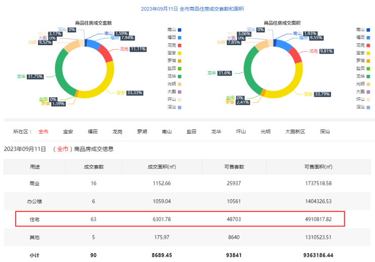 9月11日深圳新房住宅网签63套 二手房住宅网签122套