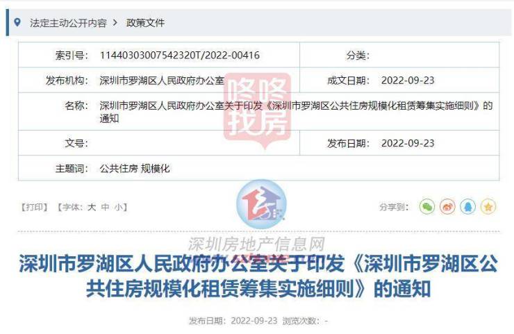 近日,罗湖区人民政府办公室印发《深圳市罗湖区公共住房规模化租赁筹集实施细则》(以下简称《实施细则》)。
