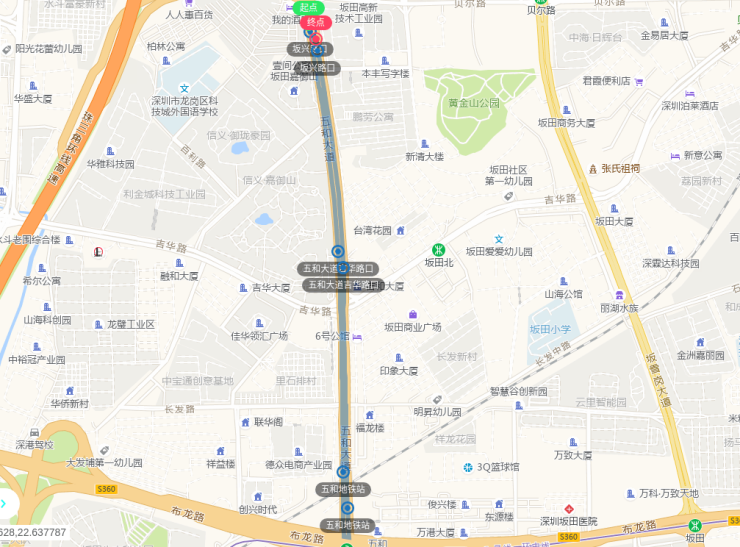 坂兴路口、五和大道吉华路口、五和地铁站、五和地铁站、五和大道吉华路口、坂兴路口