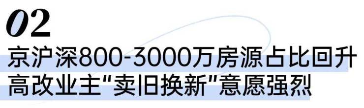 从总价段来看,北京、上海、深圳总价800-3000万二手房挂牌量全线上升,环比分别增长0.57个百分点、0.66个百分点和0.72个百分点。