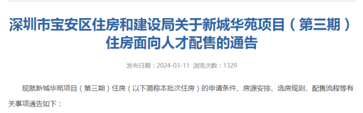3月12日起配售!宝安可售型人才房新城华苑三期推出572套房源