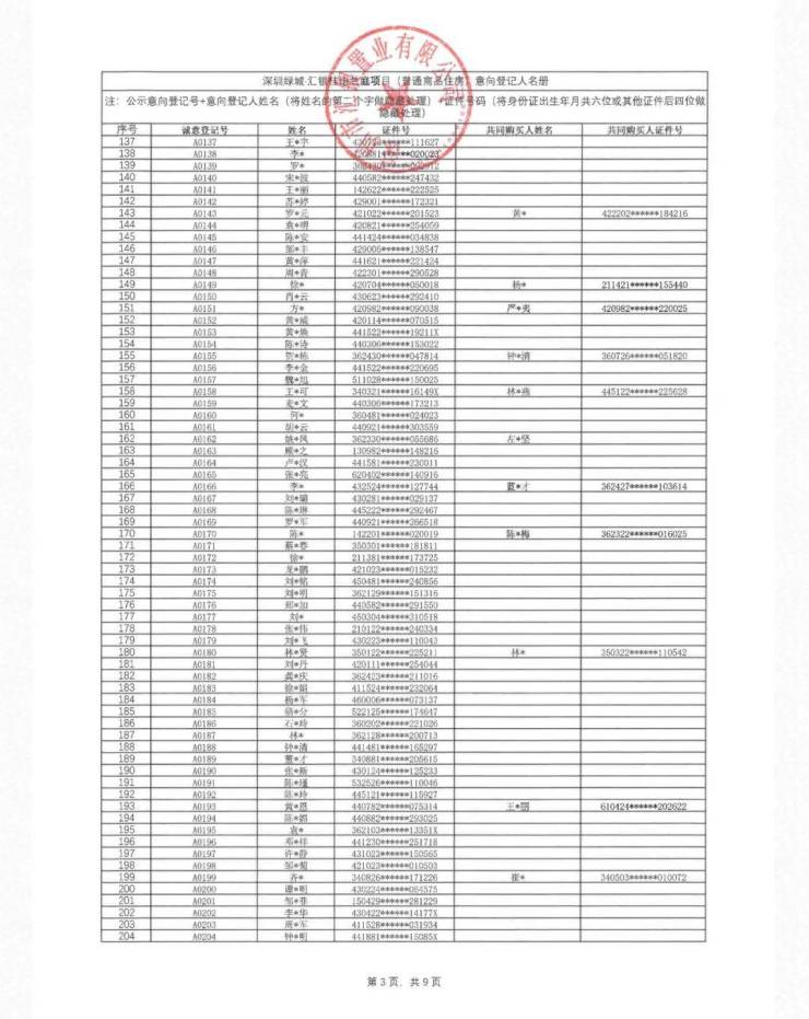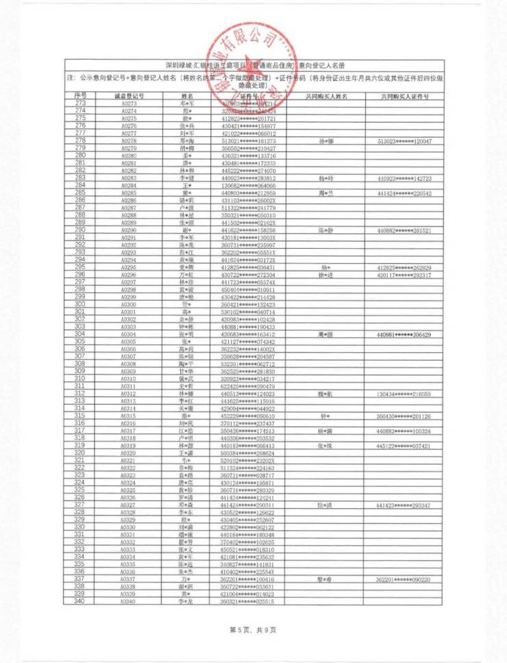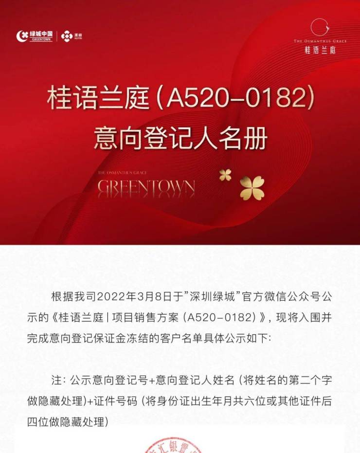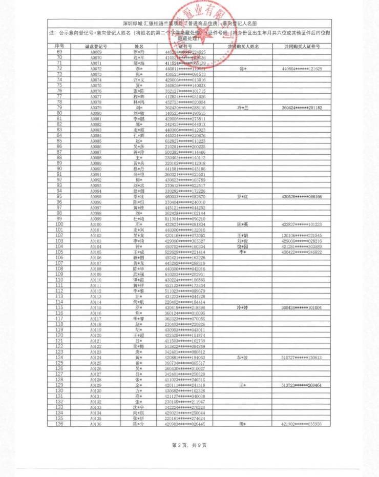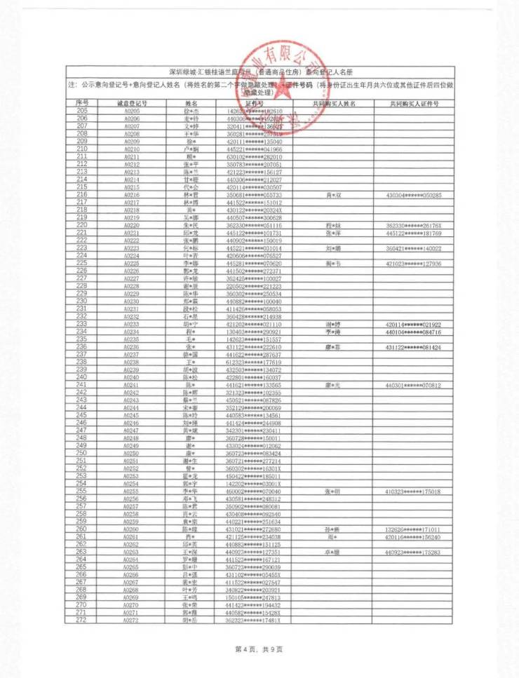 603批客,光明绿城桂语兰庭登记人名册公示,今日公证摇号